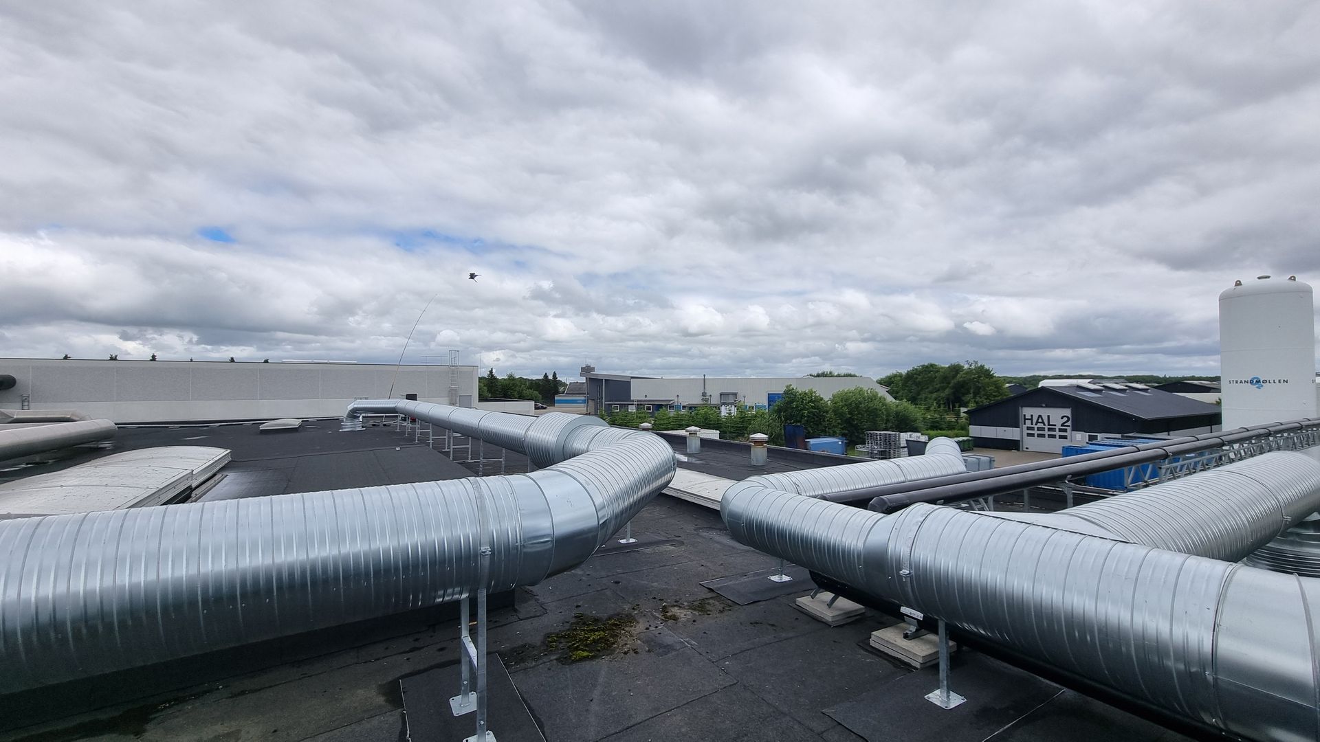 Anlægget er installeret på hallens tag og leverer indblæsningsluft i den ene ende af hallen, mens udsugning sker i den modsatte ende. Indblæsningen sker over arbejdsstationerne, hvor kagerne formes og placeres på stikvogne. For at sikre en jævn fordeling af indblæsningsluften langs hallens bredde, anvendes to indblæsningsposer. Disse poser sikrer en effektiv lufttilførsel og er samtidig nemme at rengøre.